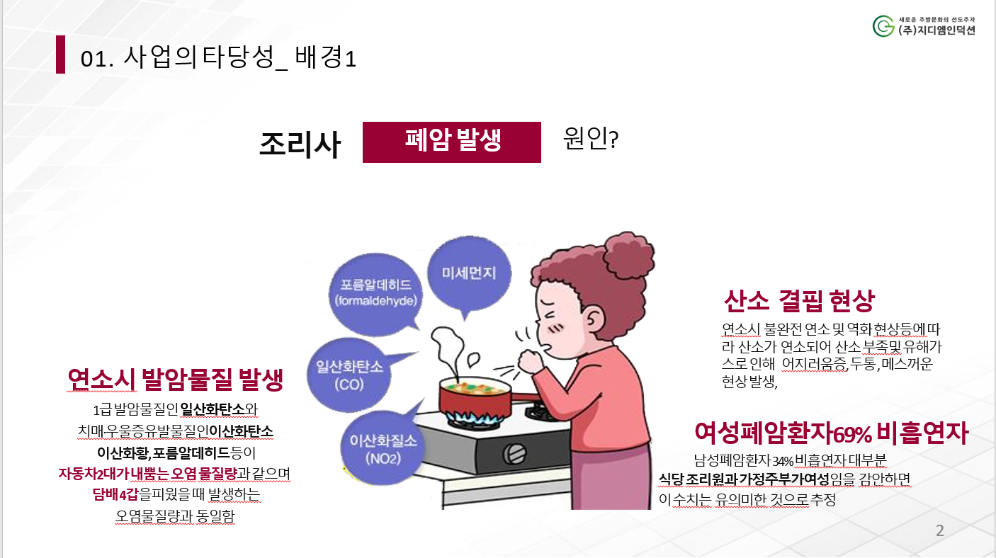 조리시 가스 연소에 장기 노출시 발생되는 바람물질 과 산소 결핍이 주 원인!